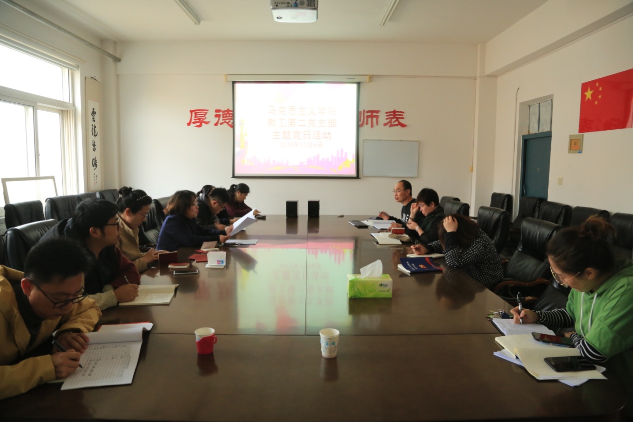 11月6日下午,永利集团304am官方入口教工第二党支部在院会议室开展了主题党日活动,活动由支部书记郭霞主持,全体党员参加了本次活动。活动内容主要是深入学习党的十九届四中全会公报,讨论《大连海洋大学关于加强和改进师德师风建设工作的实施意见》。