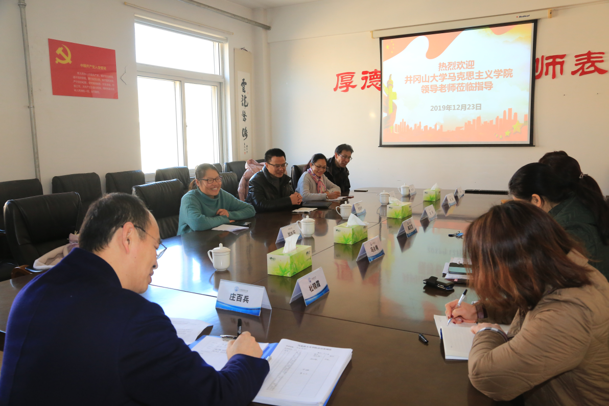 2019年12月23日,井冈山大学永利集团304am官方入口任俊宏主任一行4人到我院调研走访。学院党总支副书记兼副院长吴卫卫、党总支副书记李琳、马克思主义基本原理教研室全体教师参加座谈交流。我院副院长吴卫卫对永利官网永利集团304am官方入口的建立与发展情况做了简要介绍,随后双方就学科建设、研究生培养、思政课教学改革与创新进行了充分的交流与研讨。本次交流增进了两个学院之间的相互了解,双方表示在研究生培养、特色教学方面要互相借鉴,并表达了开展进一步合作的意愿。借此契机,我院也将开展一系列对外交流调研活动,不断推进学院教学、科研及学科建设工作。