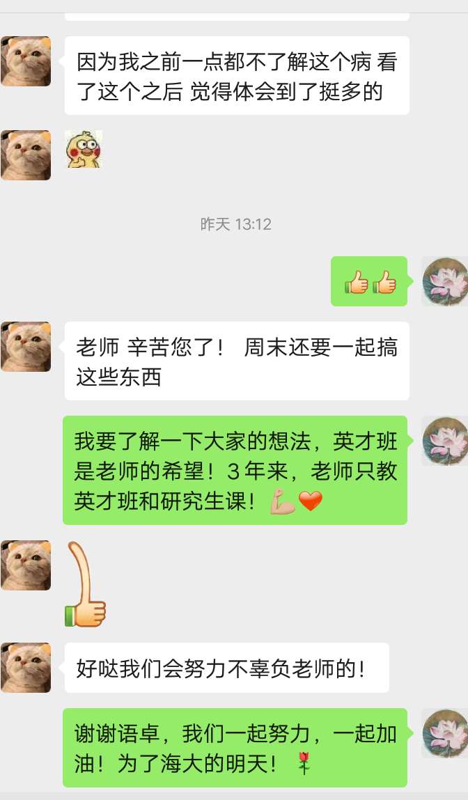 一周来,已有150余名学生留言感慨,10余名同学自创书画、制作视频吐露心声,展现了海大学子的情怀与担当。
