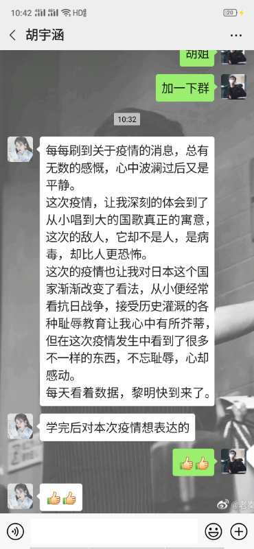 本着“你为我’负重前行’,我为你’守住后方’”的坚定信念,3月2日,陈曦老师开始了他的第一次线上教学。为了拉近与学生的距离,开课伊始,陈曦老师在微信群中首先做了自我介绍、并附上了个人生活照,开始了与学生的第一场互动,为新学期的学习奠定了良好的情感基础。