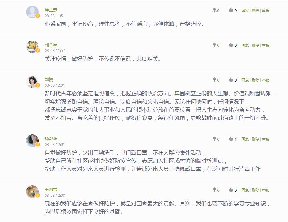 本学期的《马克思主义基本原理概论》课程采用超星线上平台系统进行教学,“微视频+测验+主题讨论+专题讲解”的授课模式即充分的调动学生自主学习的积极性,同时借助大数据的统计分析结果,可以让老师有效的把握学生学习过程中的难点与兴趣点,让教学内容更加富有针对性,做到精准思政。当前,疫情防控工作是党和国家的头等大事,马克思主义基本原理概论教研室在集体讨论备课后,最终把《青年人应从这次抗疫中读懂什么?》作为开学第一课的主题。