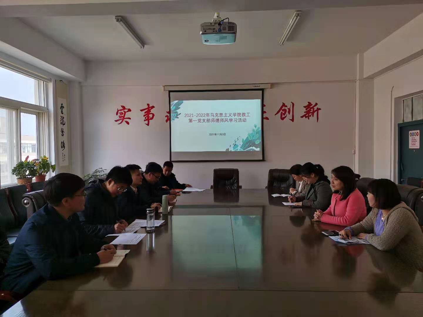 2021年11月3日下午,永利集团304am官方入口教工第一党支部在学院会议室进行了本学期师德师风学习活动。