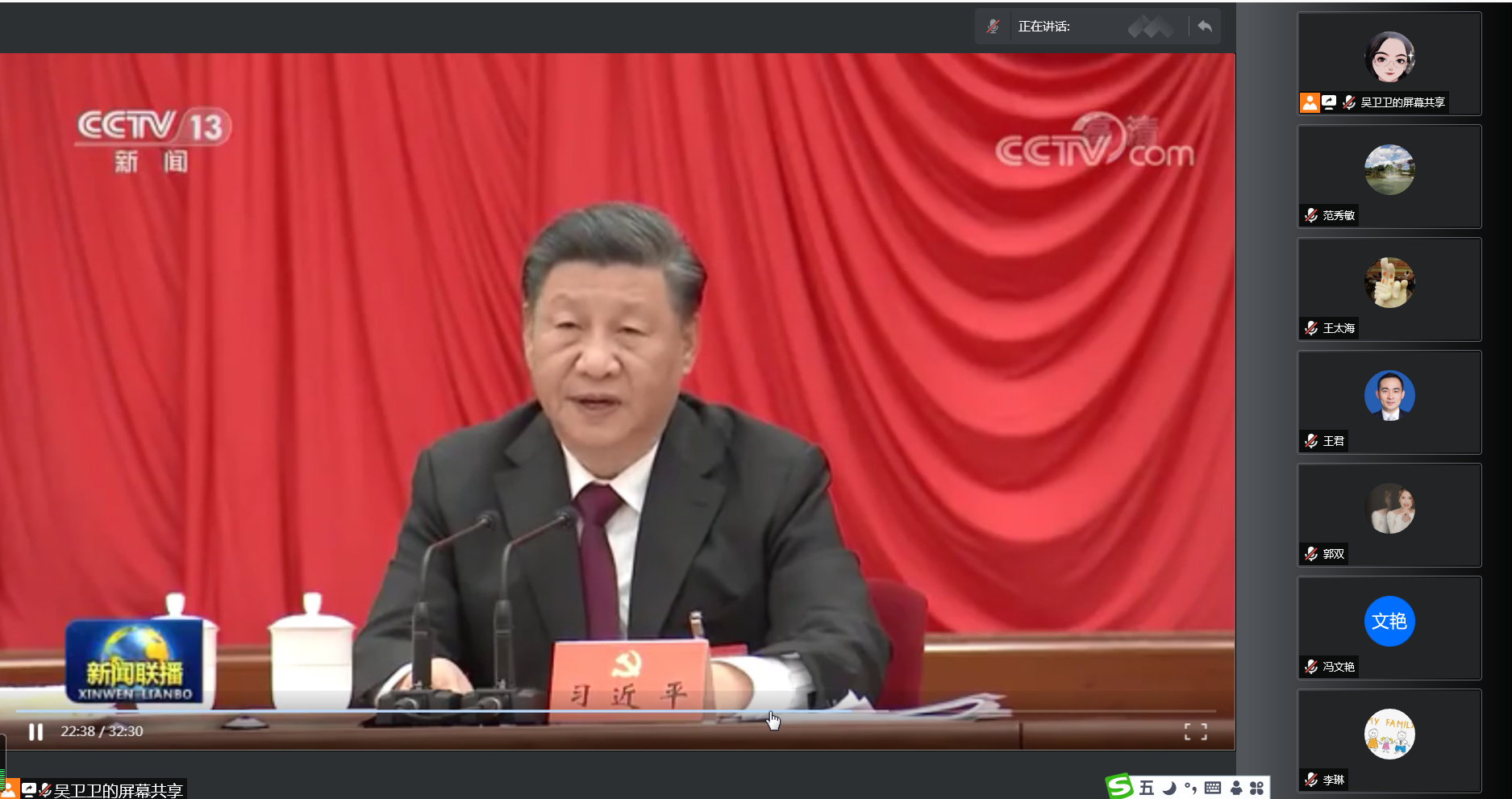 本次集中学习前,中心组成员分别自学了党的十九届六中全会精神,并认真撰写了学习体会。在集中学习研讨会上,大家再次通过观看新闻视频的形式学习了十九届六中全会公报,并就自己的学习体会进行了认真交流。