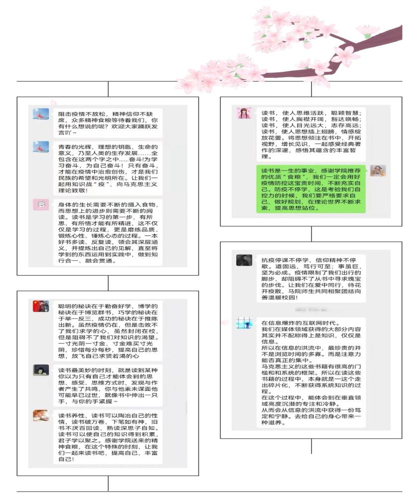 用知识战“疫”,用理论致敬!同学们在收到“温暖”后立刻进入了学习模式,以寝室为单位进行小组学习,记录笔记,并就书中精彩内容展开讨论。疫情虽然还在肆虐,但这焉能阻挡我们一心向学的高涨热情!