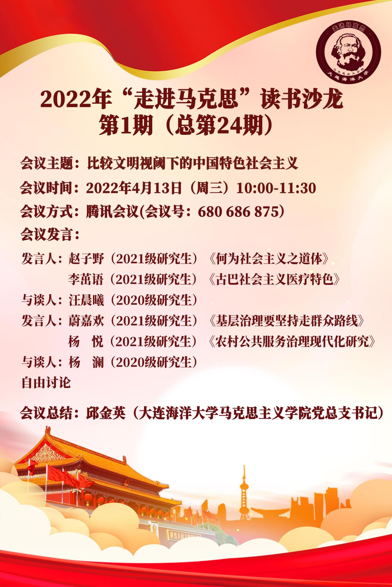 4月13日上午,永利集团304am官方入口党总支教工第二党支部和研究生党支部以“走进马克思”线上读书沙龙形式开展主题党日活动。活动的主题为“比较文明视域下的中国特色社会主义”,教工第二党支部、研究生党支部的全体党员和永利集团304am官方入口全体研究生参加了此次活动。