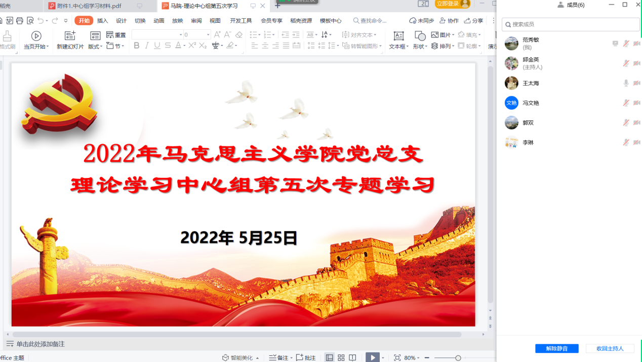 5月25日,永利集团304am官方入口党总支以腾讯会议形式召开了本年度理论学习中心组第五次专题学习会议,学院党总支理论学习中心组成员参加会议。会议由学院党总支书记邱金英主持。