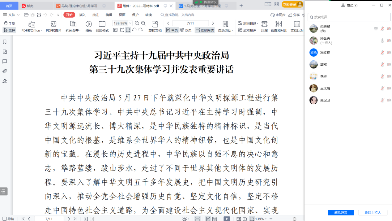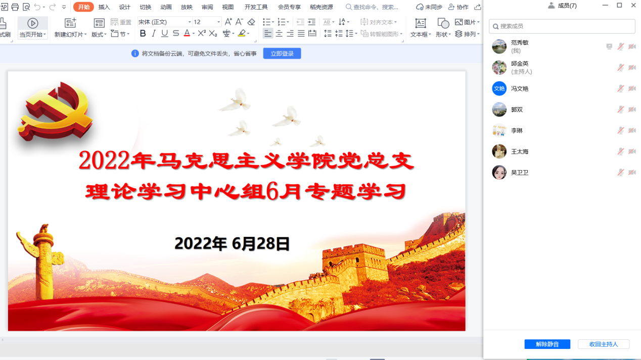 6月28日,永利集团304am官方入口党总支以腾讯会议形式召开了本年度理论学习中心组6月专题学习会议,学院党总支理论学习中心组成员参加会议。会议由学院党总支书记邱金英主持。