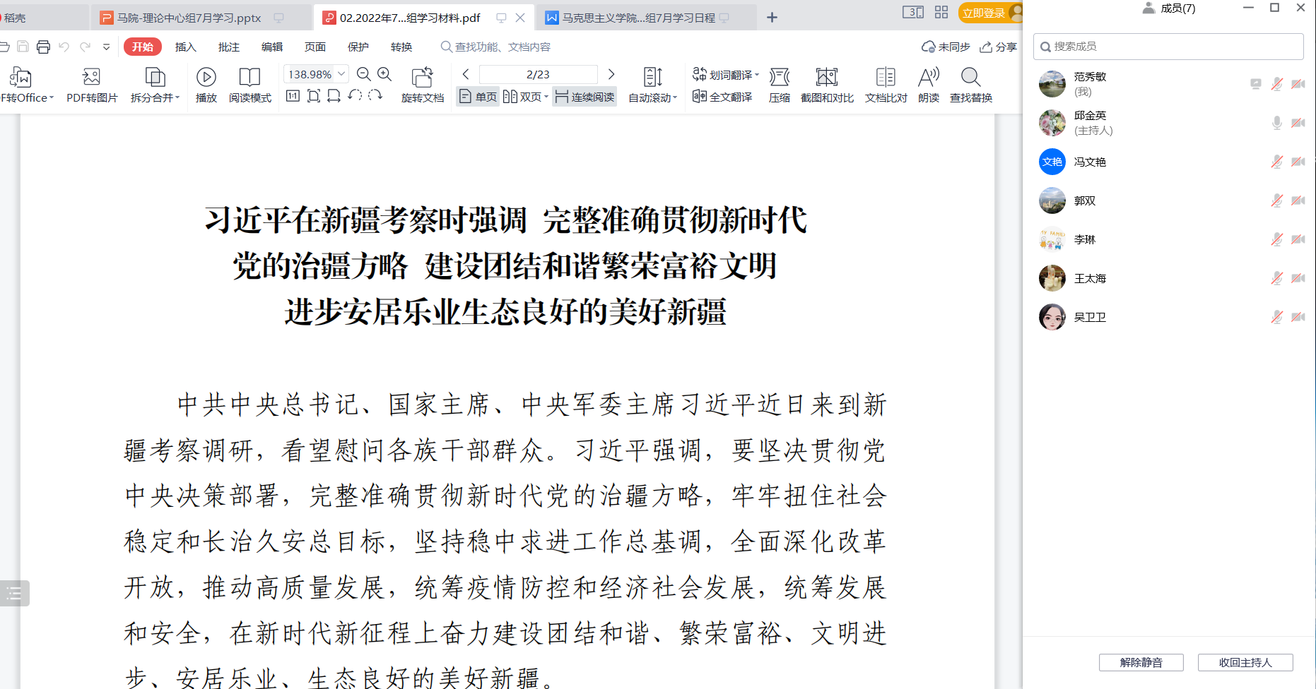 会上,以总支委员领学的形式集中学习了“习近平总书记在新疆考察时的重要讲话精神和习近平总书记在十九届中共中央政治局第四十次集体学习时的讲话精神”等专题内容。本次学习研讨由吴卫卫和冯文艳分别做了交流发言。