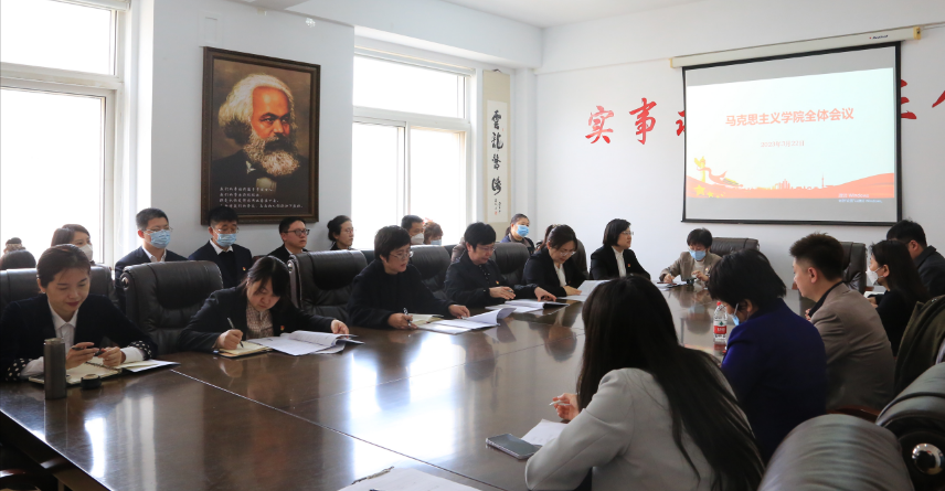 学院院长兼党总支书记邱金英带领全体教师深入学习了校党委书记姚杰在中国共产党大连海洋大学第三次代表大会上所作的题为《聚焦事业高质量发展 服务全面振兴新突破 为建设特色鲜明、具有重要行业影响力的高水平海洋大学而团结奋斗》的党委报告,并全面传达了学校2023年全面从严治党暨党风廉政建设工作会议精神。她强调,学校第三次党代会是在全党全国各族人民深入学习贯彻党的二十大精神、全省上下全力实施辽宁全面振兴新突破三年行动的重要时期,在永利官网迈向建设高水平海洋大学新征程的关键时刻,召开的一次十分重要的大会。党委报告中对永利集团304am官方入口、马克思主义理论学科和思政课程建设等方面作出了重要部署,为推进马克思主义学院发展建设指明了前进方向,提供了根本遵循。学校全面从严治党暨党风廉政建设工作会议,全面总结回顾了学校2022年全面从严治党工作开展情况,深刻分析了当前全面从严治党工作面临的新形势新任务,研究部署了下一阶段学校全面从严治党工作任务,为坚定不移把永利官网全面从严治党工作引向深入提出了明确要求。