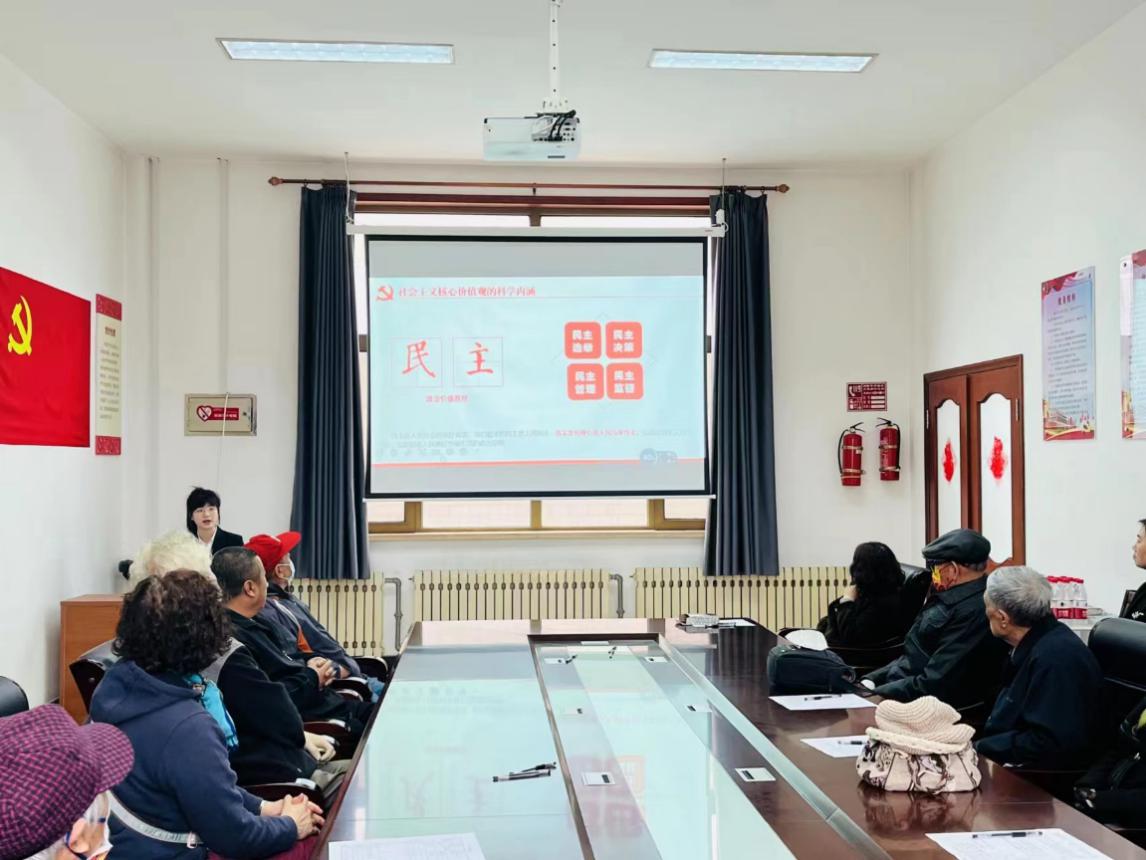 4月25日,永利集团304am官方入口2021级研究生刘海红、付新宇应邀到旅顺开发区海花社区以“培育和践行社会主义核心价值观”为主题开展理论宣讲。