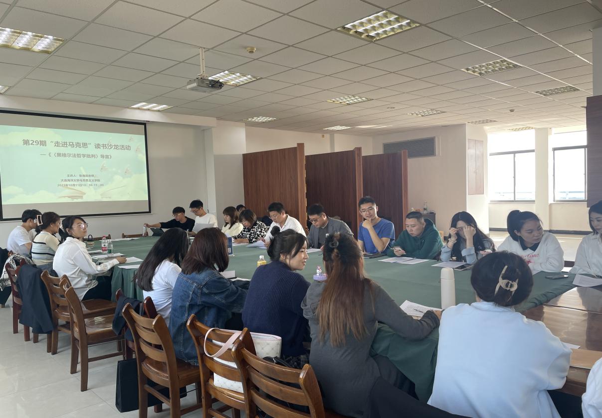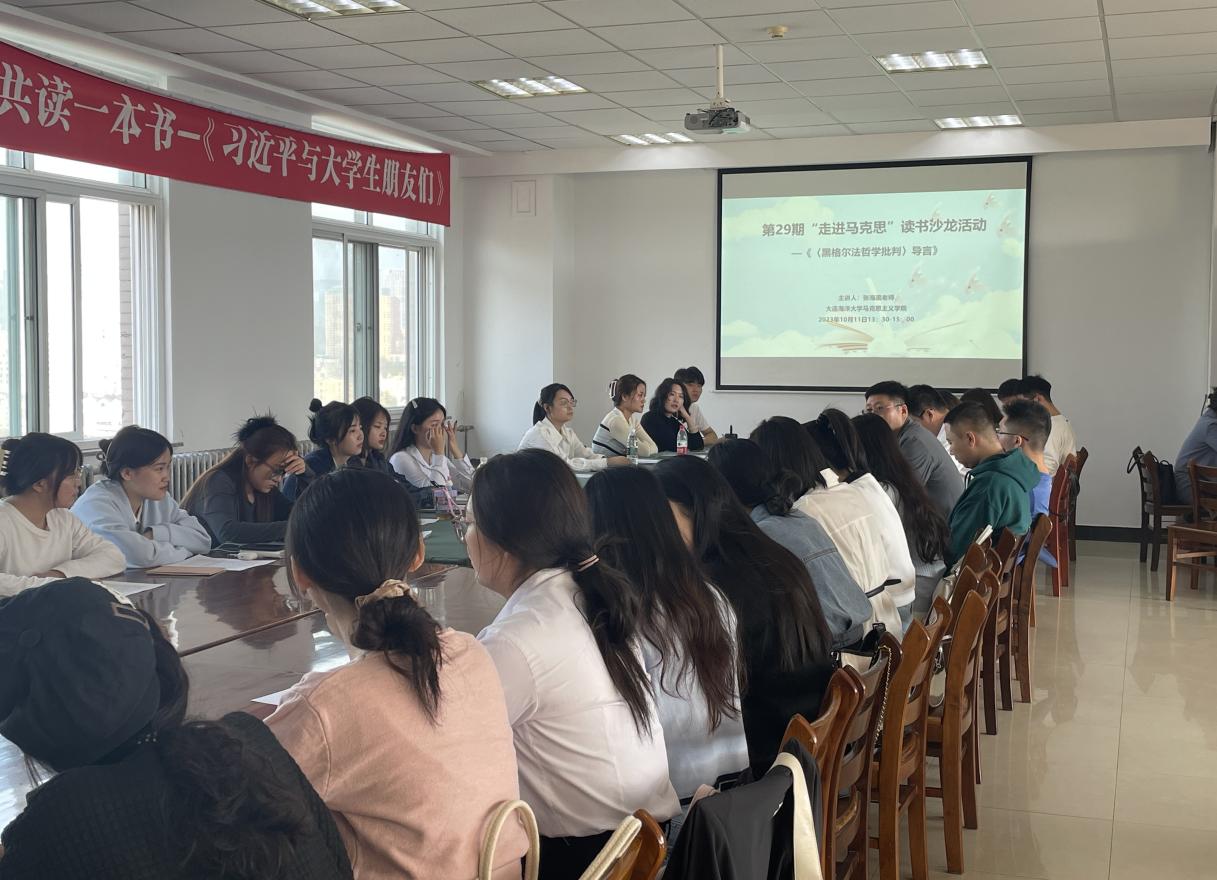 本次读书沙龙活动的阅读书目为《<黑格尔法哲学批判>导言》。张海滨对《<黑格尔法哲学批判>导言》的写作背景和主要内容进行了介绍,带领同学们对文章进行精读,并从理论与实践的辩证关系、无产阶级历史使命及思想政治教育在无产阶级革命运动所发挥的重要作用等角度对重点内容进行了详细讲解,师生们又从在阅读学习过程中遇到的问题进行了讨论和交流。